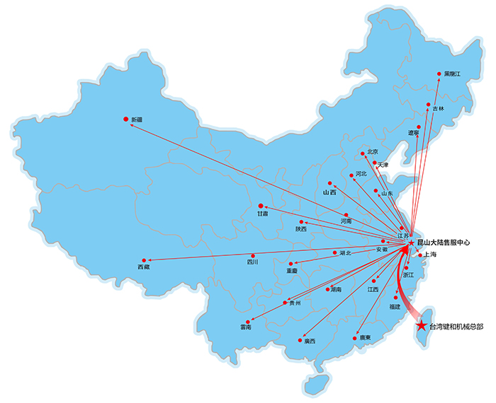 昆山嘉尼赫機(jī)械有限公司為臺(tái)灣鍵和機(jī)械股份有限公司在大陸設(shè)定的唯一子公司,本公司于2010年4月在昆山仕泰隆模具城成立,應(yīng)市場(chǎng)需求于2015年2月搬遷至昆山周市鎮(zhèn)成立鍵和中國(guó)售服中心。設(shè)有獨(dú)立的零配件倉(cāng)庫(kù)及機(jī)臺(tái)大修車間,機(jī)臺(tái)樣機(jī)展示廳。